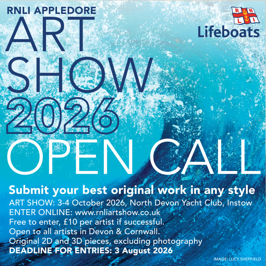 All work must be original and for sale. It’s free to enter, with a £10 submission fee per artist if successful. There is 25% commission on all sales at the exhibition with all money donated to RNLI Appledore.